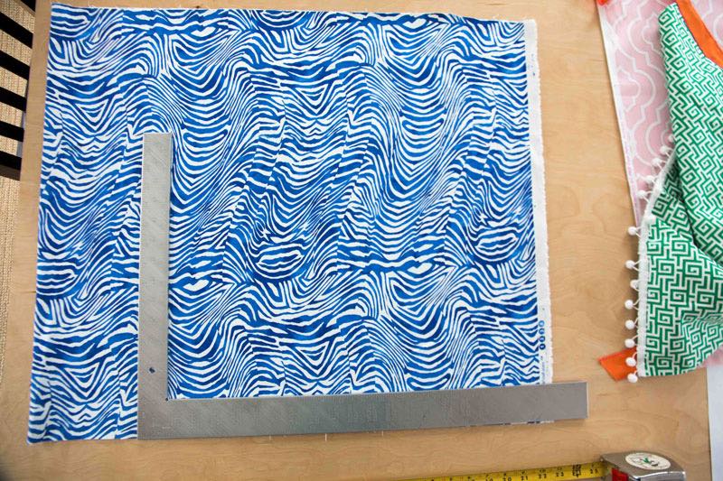 1.) Cut the pieces of fabric the desired sizes (16″ x 12.5″ and 21.5″ x 16.5″)