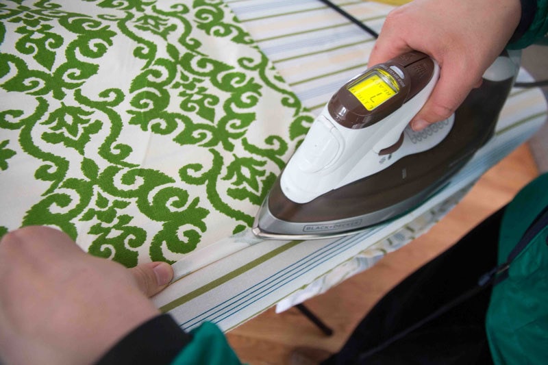 2.) Fold back about 1/4″ on a side of the apron, fold it over again 1/4″ and iron. Do this first for the sides and then for the top. You are creating what will be a nice edge. Then fold another 1/4″ on the top and the bottom the opposite way (see below) folding in on the sides and out on the top and bottom. (see second picture below) then iron the top and bottom.