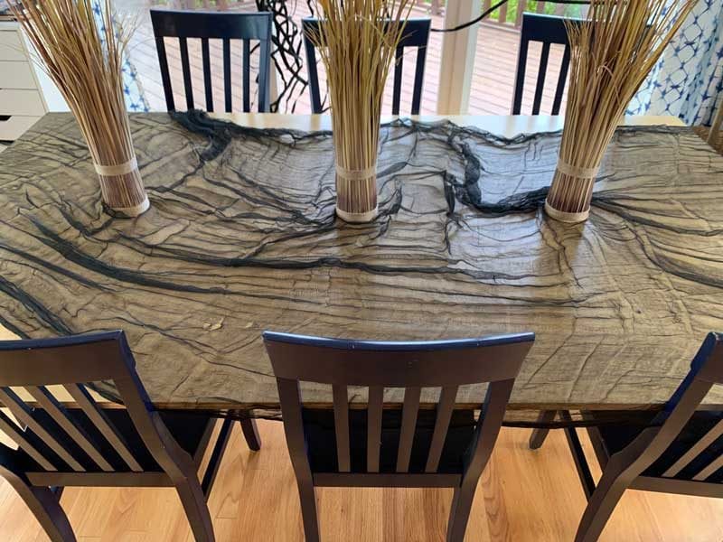 3.) Lay out your tablecloth. I chose to use this creepy black fabric which I casually draped over the table, ruching it in some sections, and letting it drop to the floor in others.