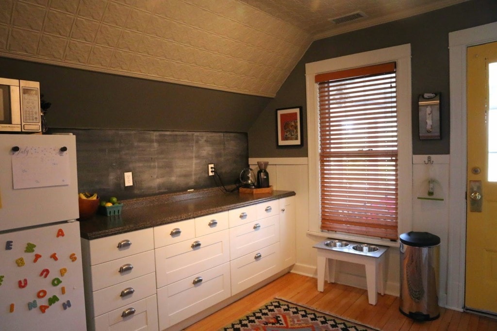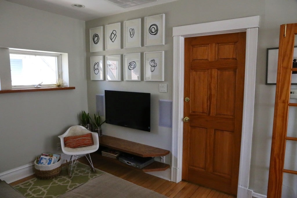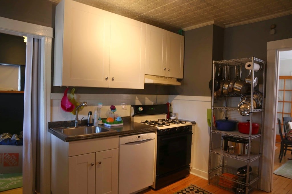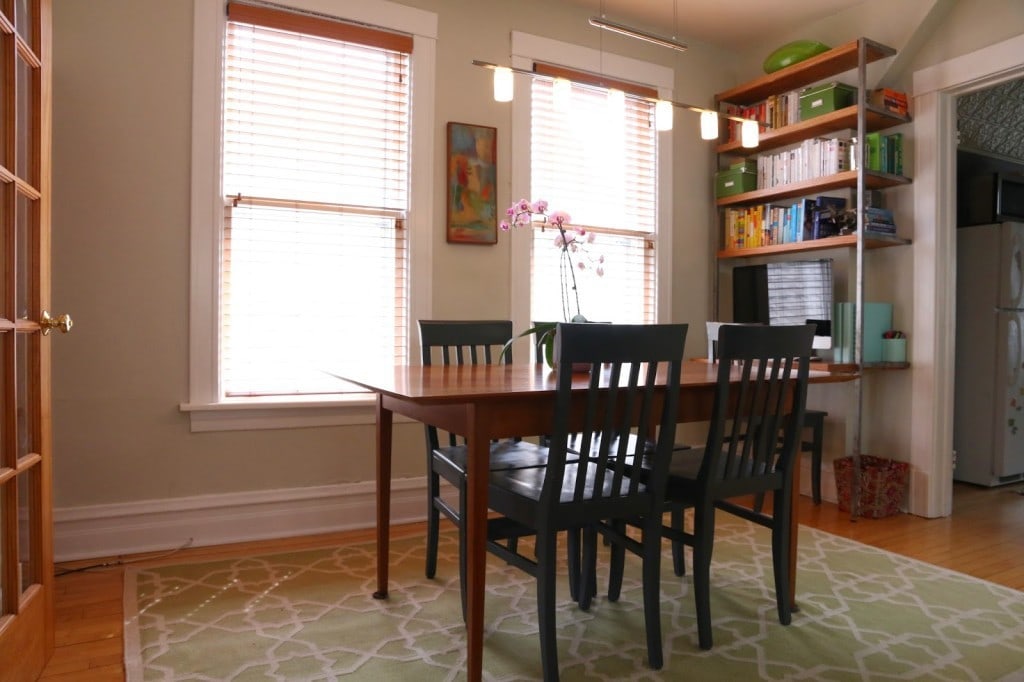 This was our first home together and we lived here for five years. We seriously stretched every square inch out of it and often joked that it was like living on a boat: If something goes in, something else must go out! It was less than 750 sq. ft. which might be a lot for a couple; but, nowhere near spacious for two adults, two great danes, and a toddler! Evan and his family had rehabbed the entire upstairs before we met. Then I moved in and added a lot of the custom furniture and renovated the kitchen.